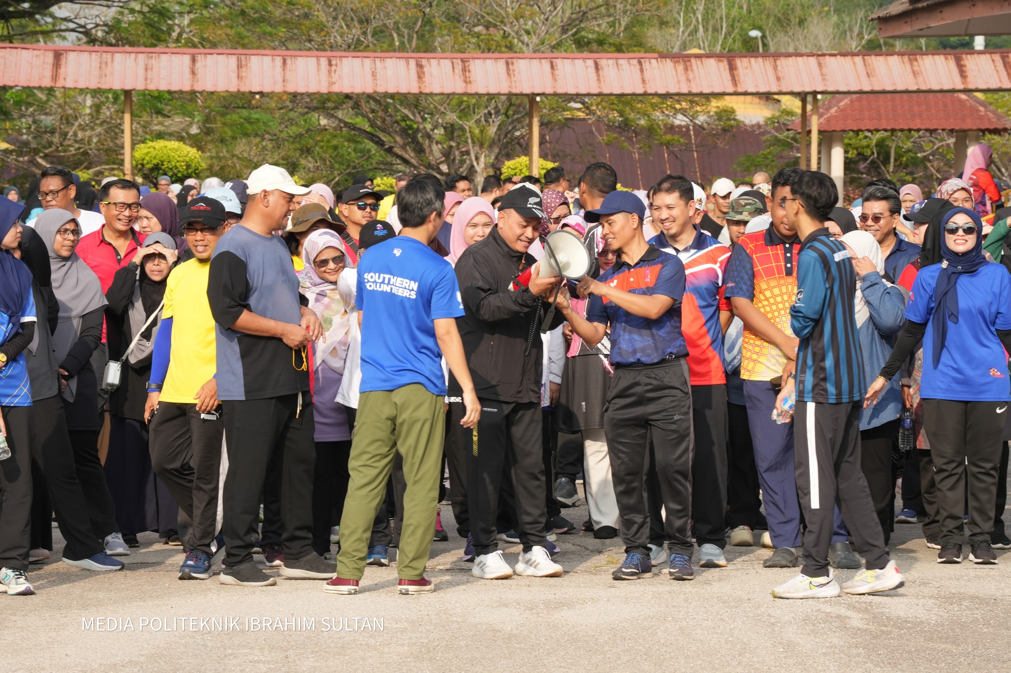 Majlis Perhimpunan Bulanan Politeknik Ibrahim Sultan anjuran Jabatan Rekabentuk & Komunikasi Visual berkonsepkan ‘STRIDE TOGETHER’ BRISK WALKATHON bersama Hj Ulaimi Yahya, Pengarah dan warga PIS.