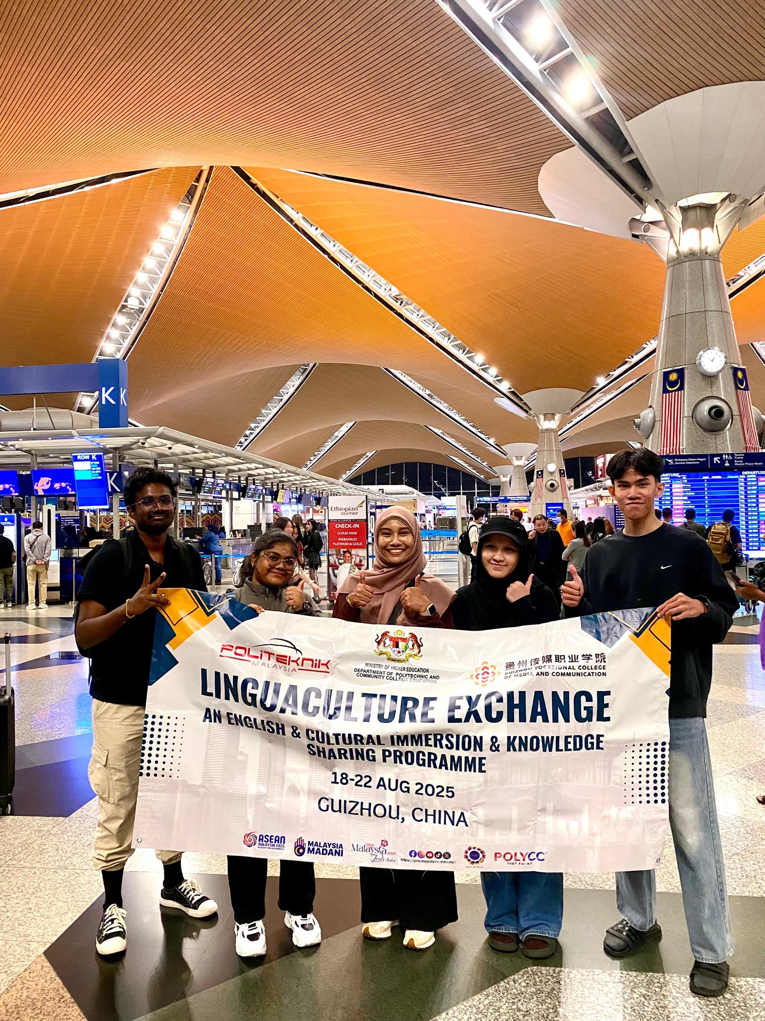 Today marks the Flag Off Session for Politeknik Ibrahim Sultan (PIS) students selected to join the LinguaCulture Exchange – An English & Cultural Immersion and Knowledge Sharing Program at Guizhou Media Vocational College, China from 18 to 22 August 2025. This program provides students the opportunity to enhance their English proficiency, develop the ability to use basic Chinese expressions in daily communication, strengthen cross-cultural understanding between Malaysia and China, showcase Malaysia’s TVET education internationally, and cultivate lasting intercultural partnership.