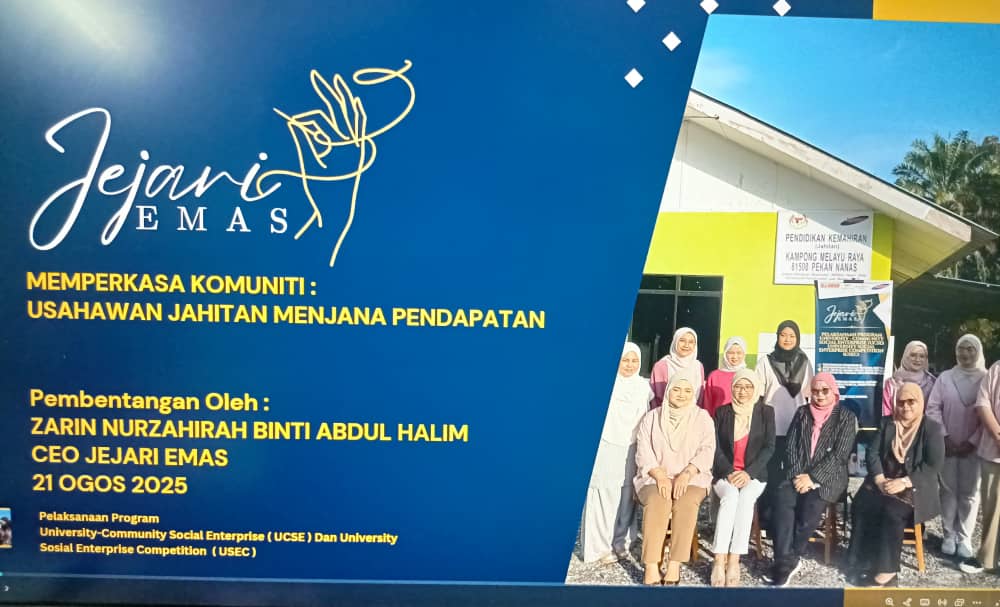 Satu Bengkel Pendidikan Kemahiran Jahitan KEMAS Kg Melayu Raya, Pekan Nenas, Pontian telah berlangsung Penilaian Fasa ke 2 bagi peserta PIS1@Jejari Emas dalam Perlaksanaan Program University – Community Social Enterprise ( UCSE) University Social Enterprise Competition (USEC). Semoga team PIS1 berjaya melangkah ke peringkat Fasa 3 bagi kelestarian PIS dalam membangunkan Komuniti Sosial yang mampu menjana pendapatan sekaligus keluar daripada garis kemiskinan.